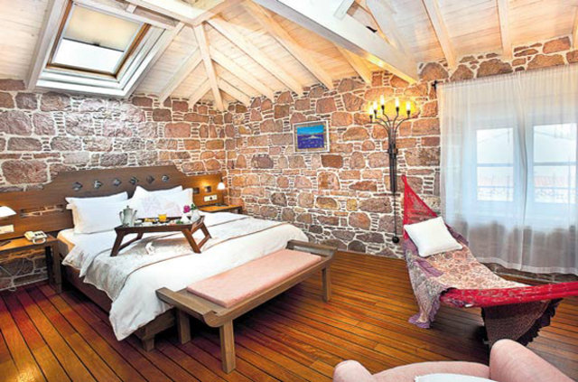 19. yüzyılda şaraphane olan bir binanın kalıntılarından yola çıkılarak yaratılan otelde sarımsak taşı duvarlar, cam basamaklı merdiven, odalarda ahşap zemin, özel yapım mermer lavabo, lobide uçuşan tülbentler eklektik bir atmosfer oluşturuyor. Ayvalık Cunda'nın merkezindeki otelin Pateriça bölgesindeki plajı, onu farklı kılan en önemli özelliklerinden. Yazın Sobe'nin özel plajında denizin ve güneşin tadını çıkarabilir, koya gelen yunusları izleyebilir, şnorkelle pina midyeleri gözlemleyebilirsiniz.